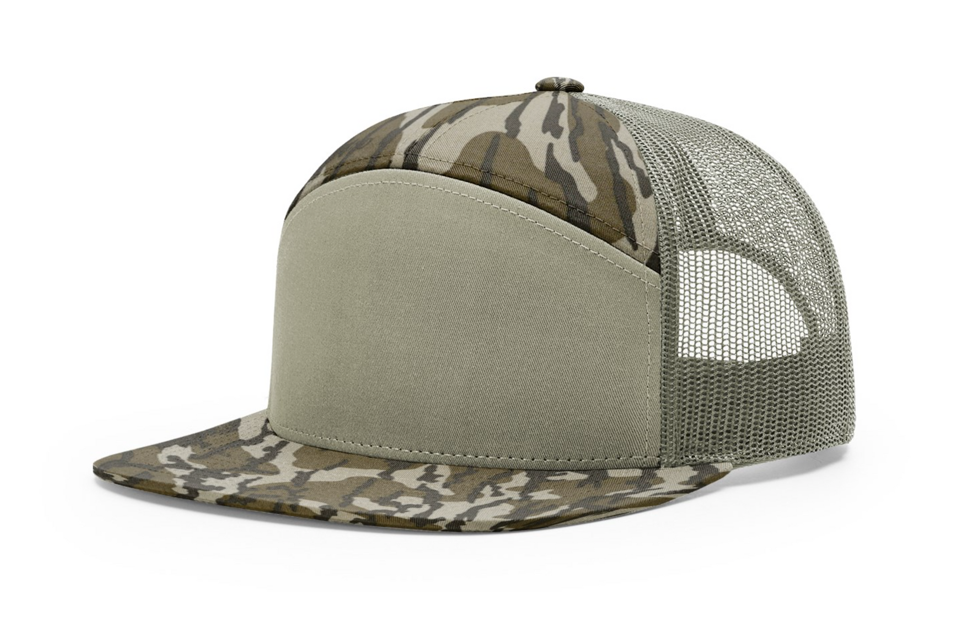 A modern seven-panel trucker, the 168P comes in both licensed camo and our proprietary duck camo prints. Featuring a flat bill and Hi Pro shape, this cap features a seamless front panel that accommodates a wide variety of decoration types.